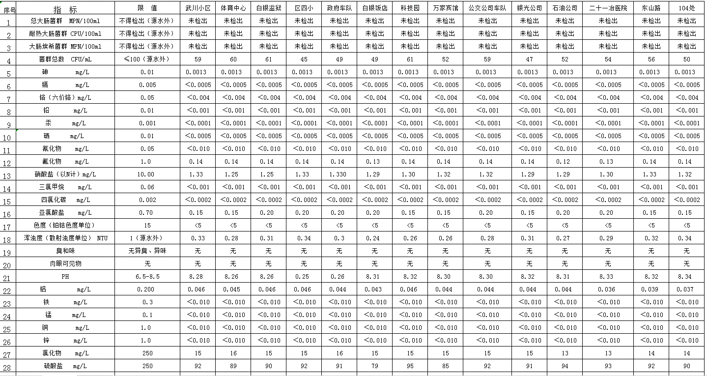 信息名稱 2020年2月用戶水龍頭水檢測表 發(fā)布機構 白銀市給排水公司
